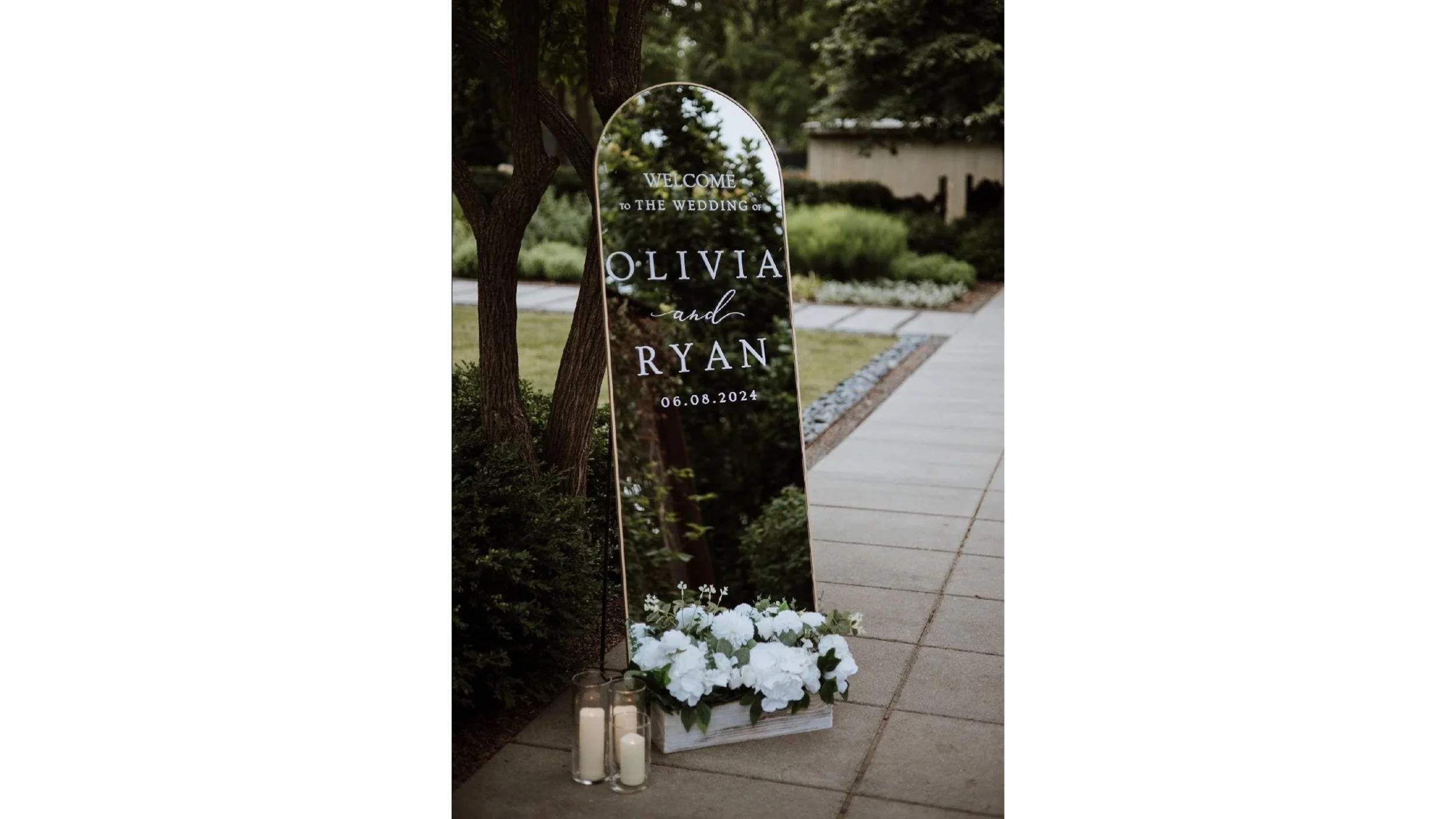 Black Self Standing Mirror Welcome SignArched Black Welcome Mirror Qty: 1 Material: Metal and Glass Measurements: 64”x21” *Yes, we customize with your name and date.