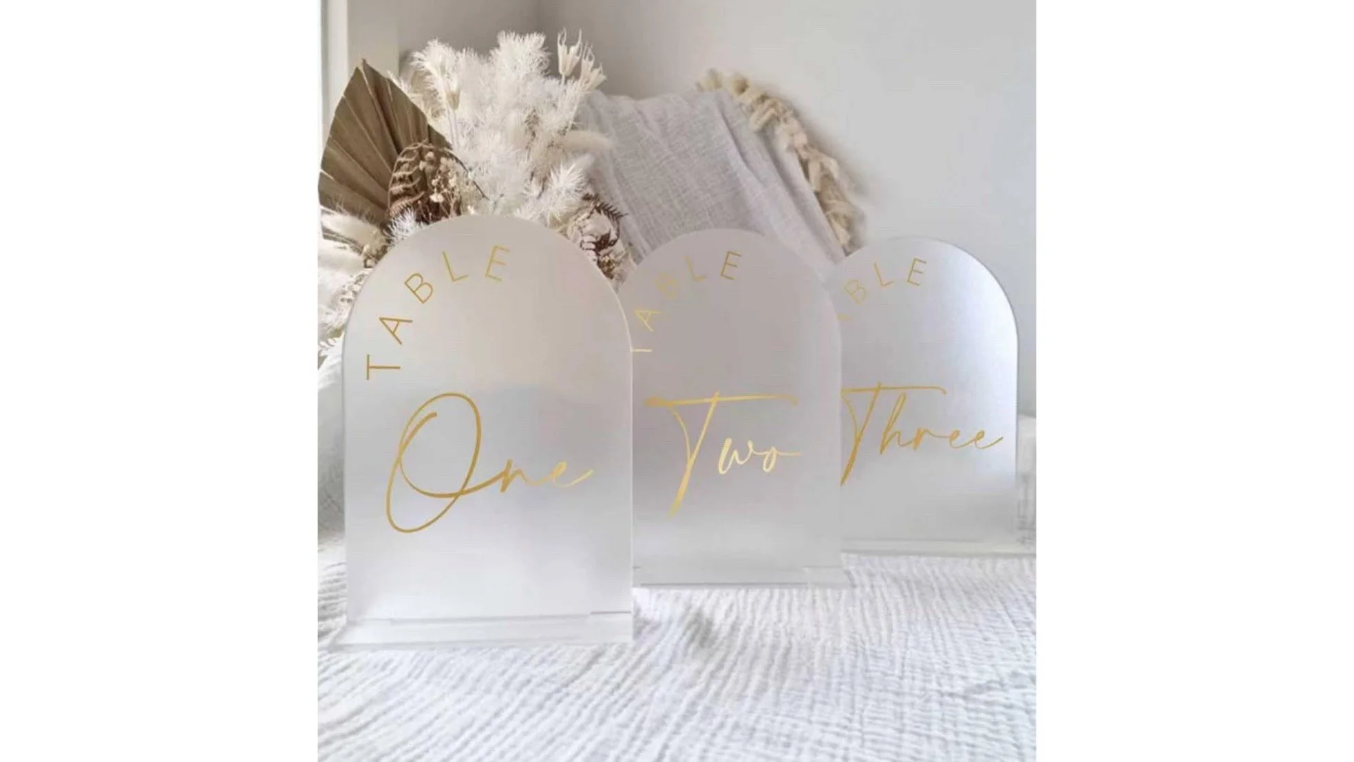 Frosted Gold Table NumbersFrosted Gold Table Numbers: 1-30 Material: Frosted Acrylic Measurements: 4x6”